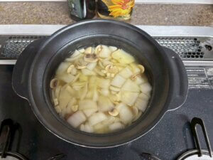12:50片付け、スープ調理。