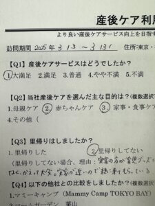産後ヘルパー株式会社のお客様産後ケアアンケーは、嘘偽りがないお客様の手書きで収集しています。
