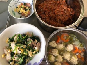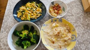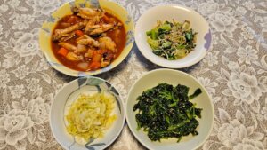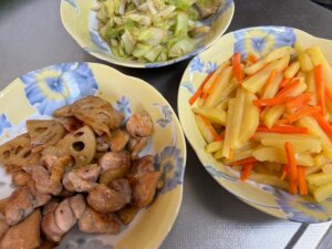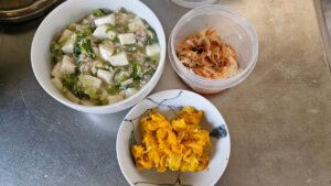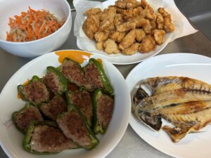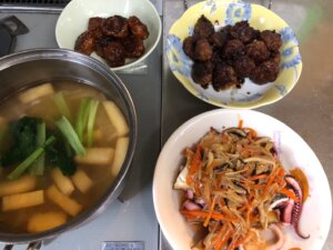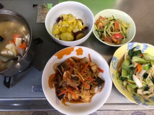 今日は昨日の残りがけっこうあったので調理は少なめでした。