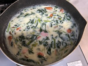 ・ソーセージとほうれん草のクリームスープパスタ(スープのみ)