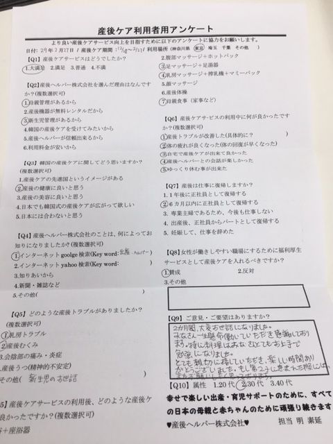 本日のお客様は 産後2か月間ご利用いただきました香港人ママです。