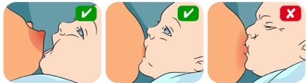 赤ちゃんが乳首のみ吸い、乳輪まで口に入れてない。
